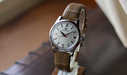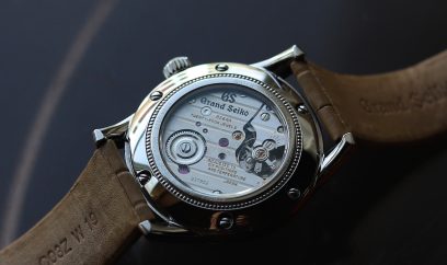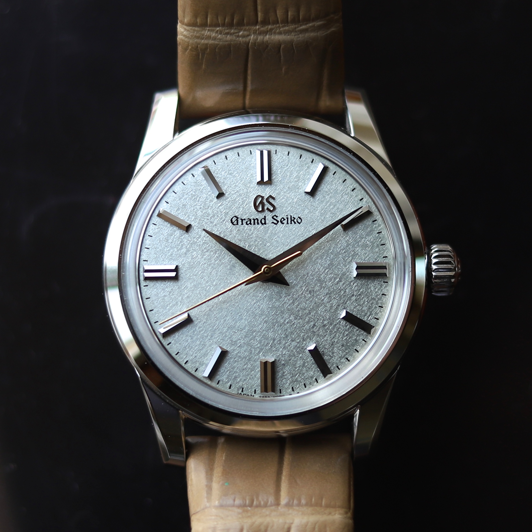 GSはスプリングドライブや自動巻き式を中心に生産していますが、こちらは古典的な手巻きモデル。