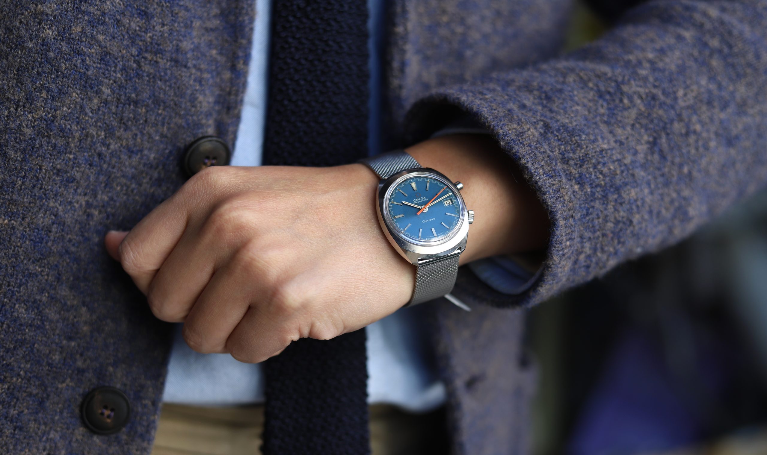 文字盤はのっぺりとしたマットブルーにオレンジ針。