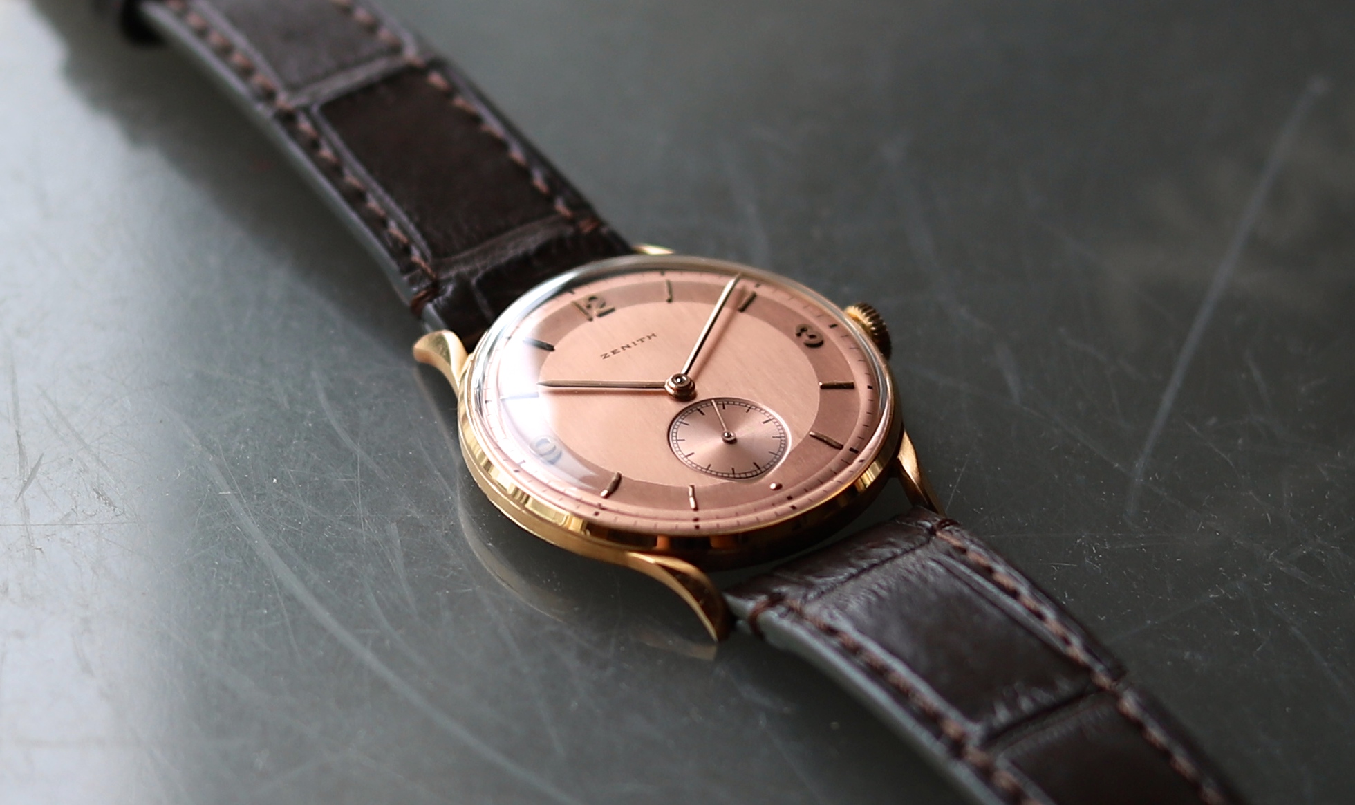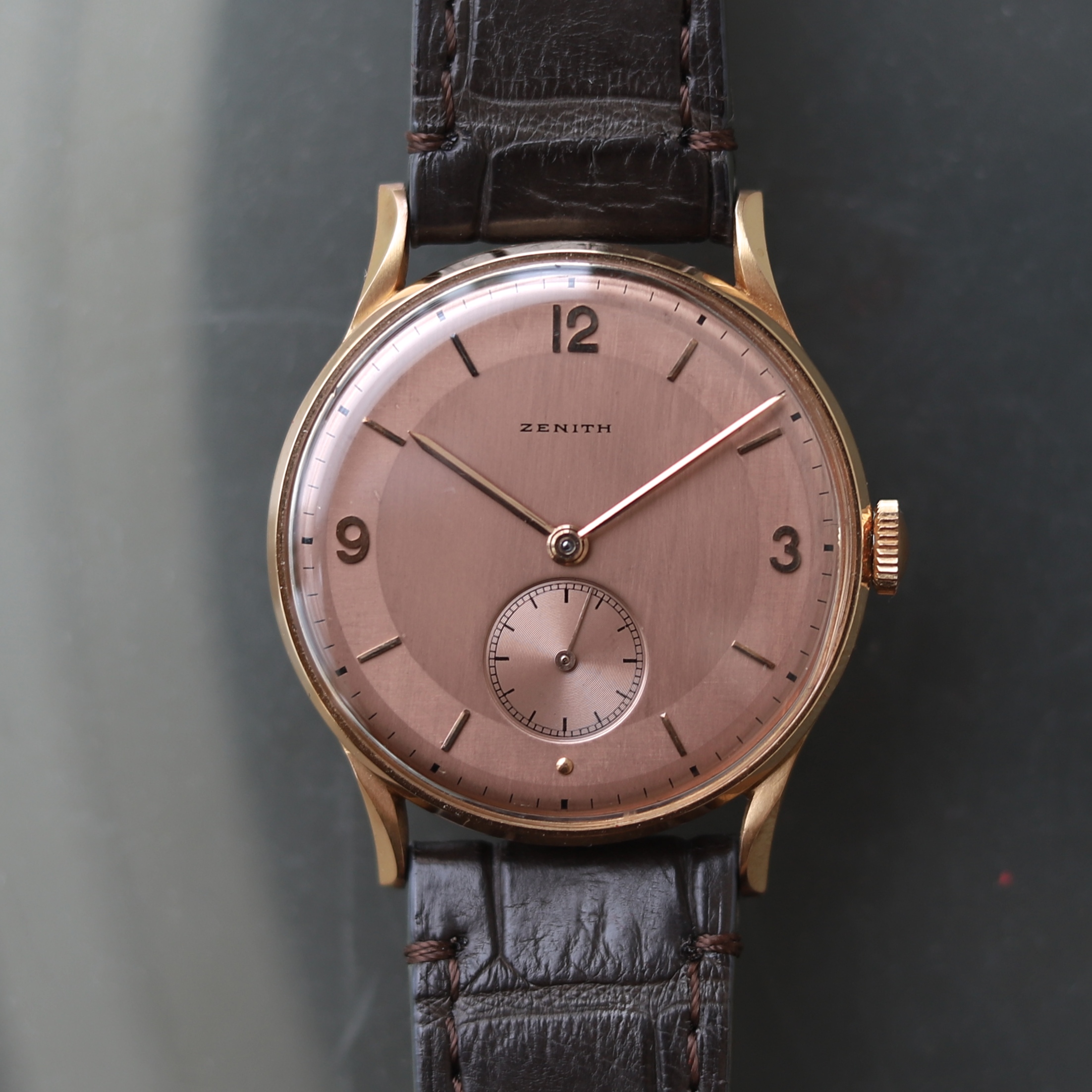 1940年代の「ZENITH / ゼニス」 K18 ピンクゴールド無垢・手巻き。