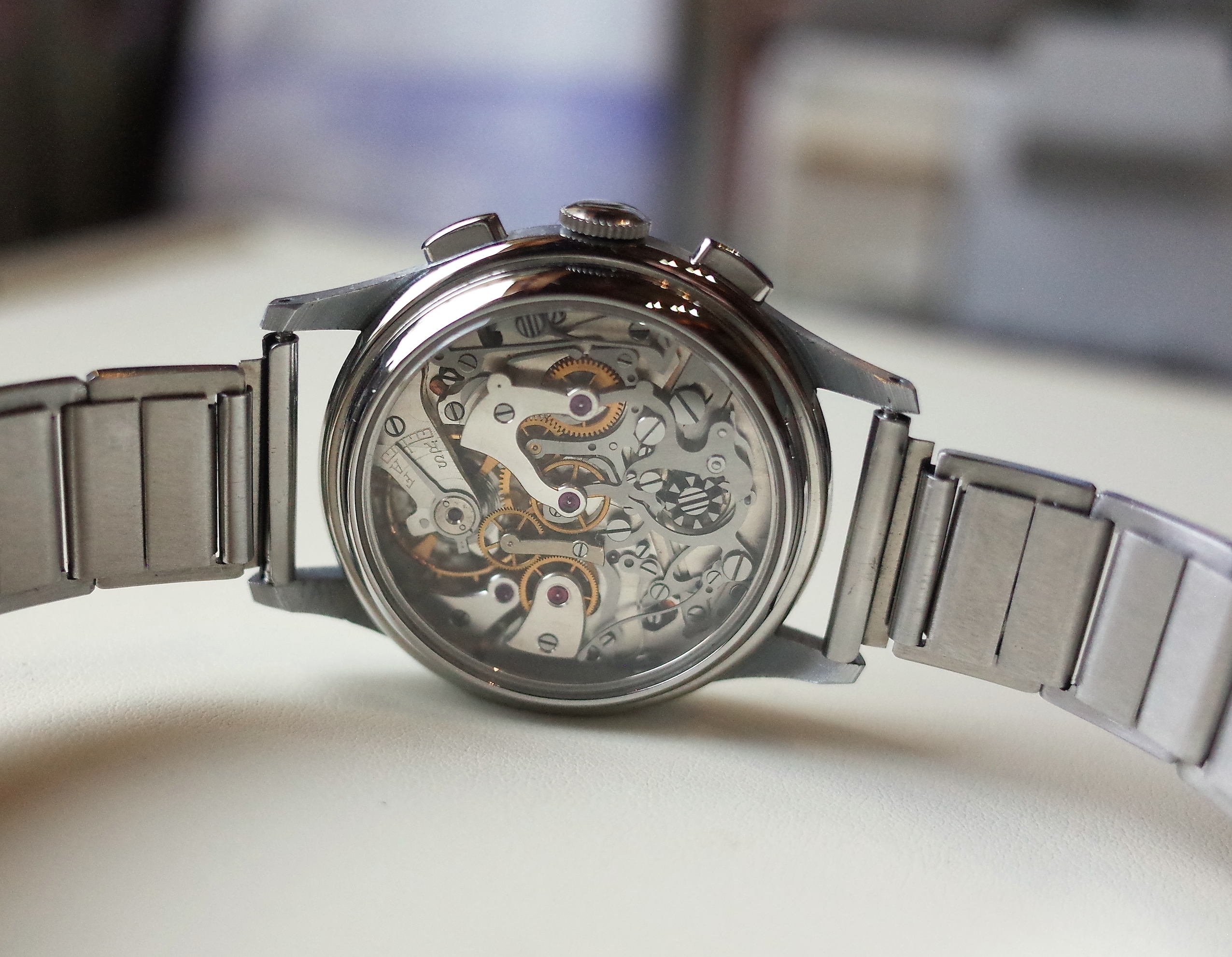 もう今では見かけることもなくなりましたが、1950年代には日本の航空自衛隊が正式採用りしており、エクシオール・パークの裏蓋には桜マークの刻印の入ったモデルが存在し、その経緯は不明ながらあの頃入手しなかったことを後悔しています。当時、確か17万円位で流通していました。