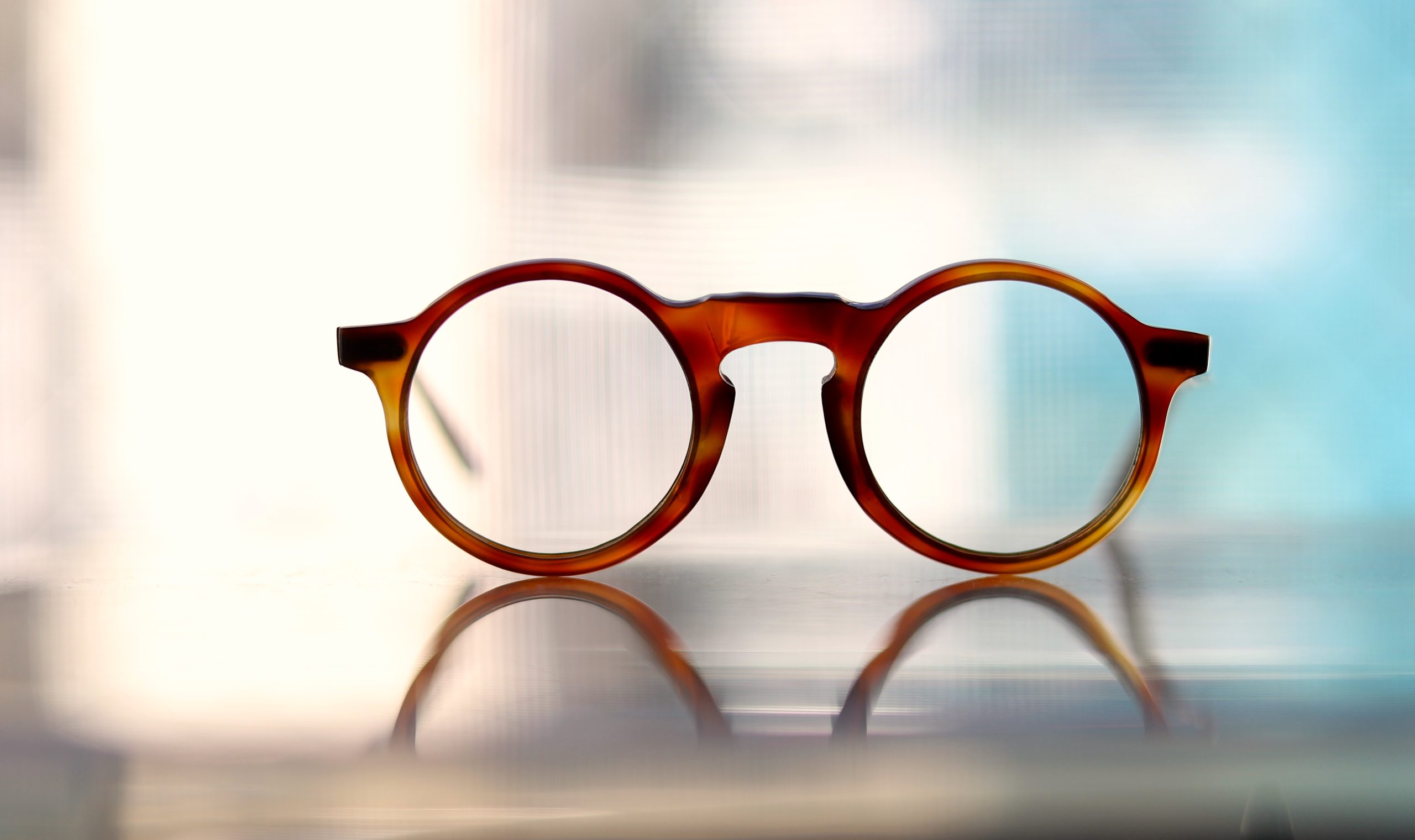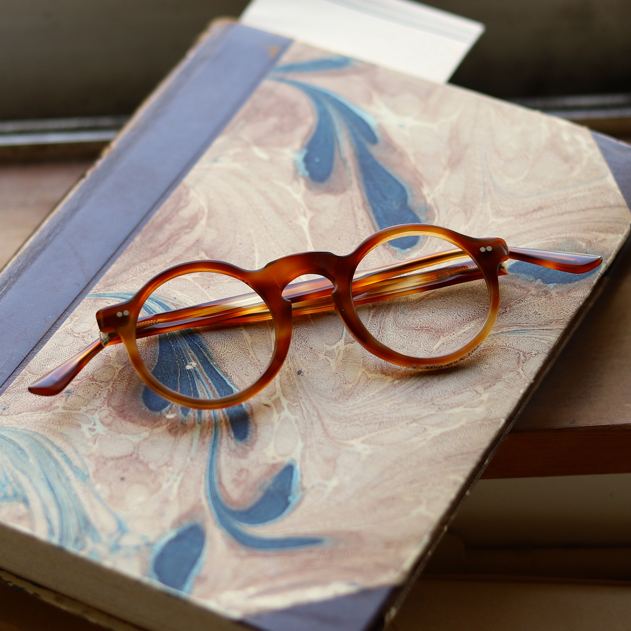 形は真円に近いラウンドモデル。 鼻ブリッジが少し上にあるデザインがヨーロピアンなデザインの特徴。