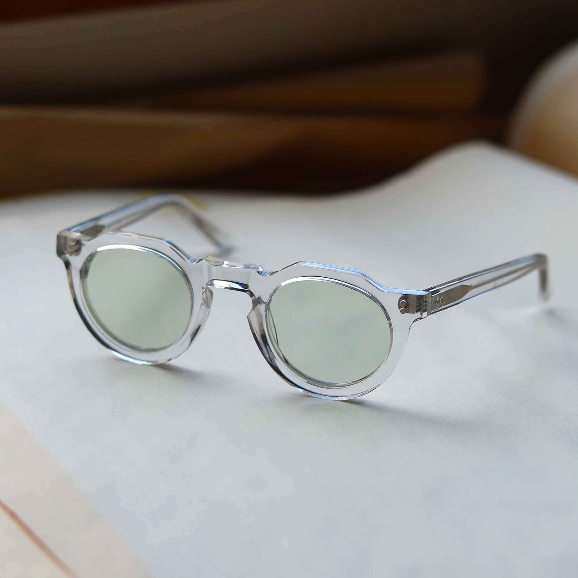 グリーンがクリアフレームに少しの苦みを加え、グッと雰囲気が出ます。