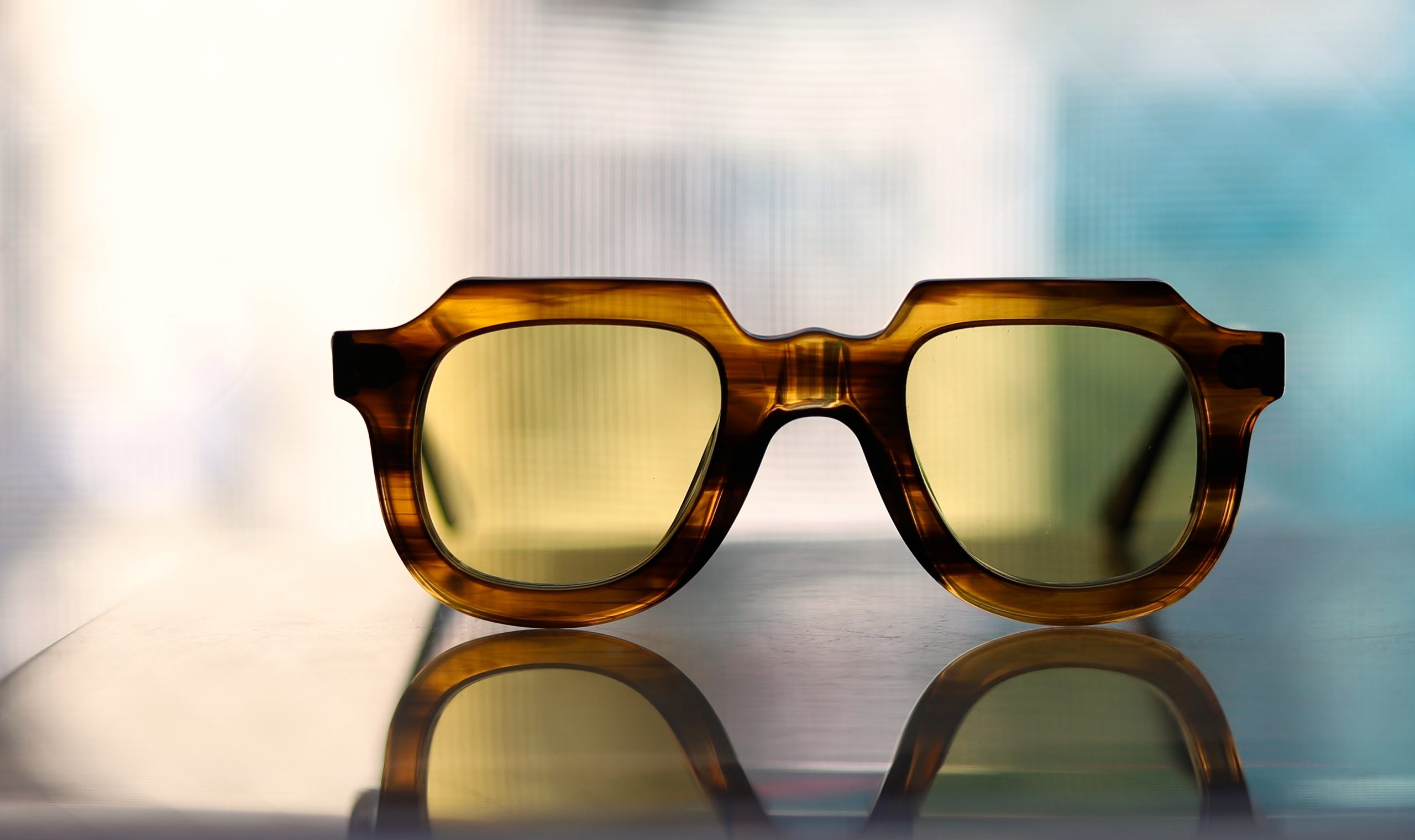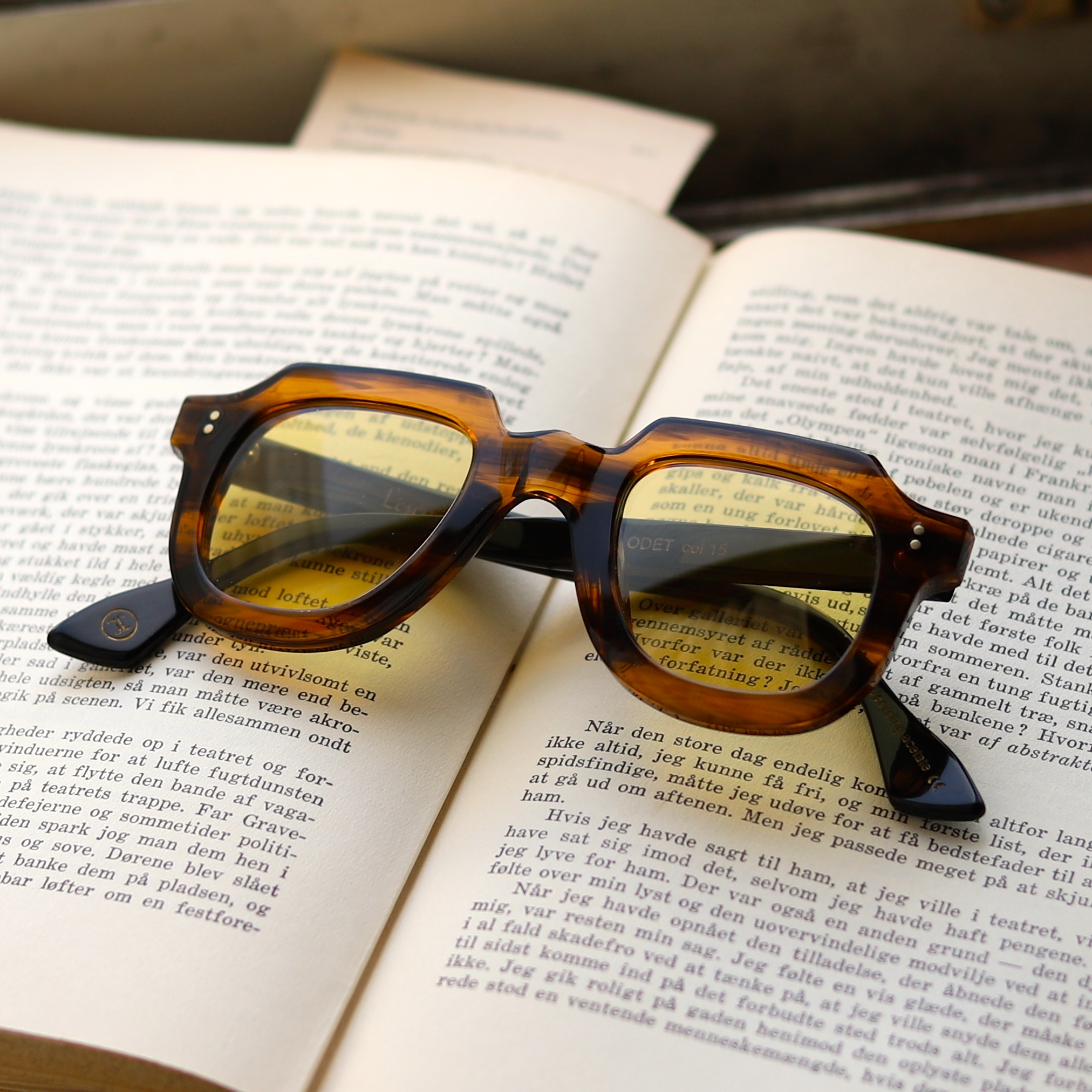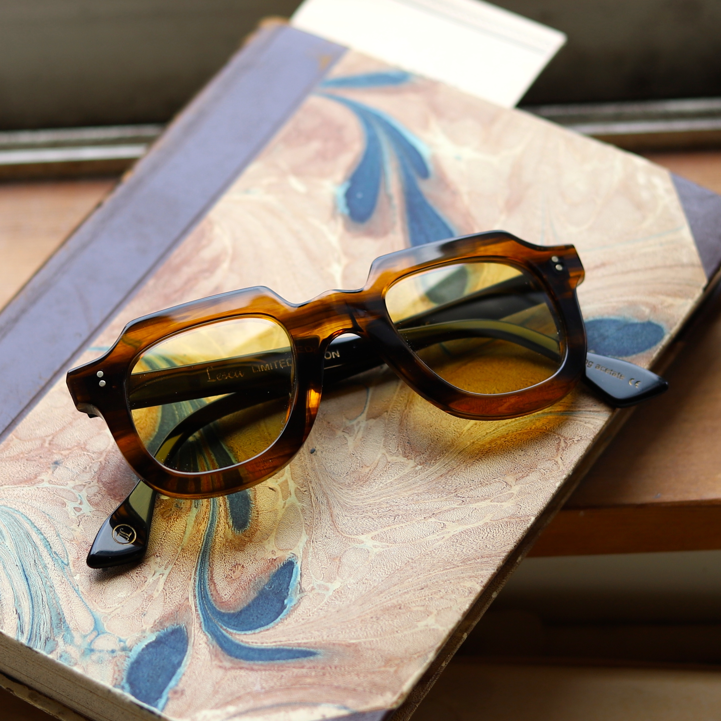 [Limited model] MODEL : ODET FRAME COLOR : クリアハバナ、ブラック LENDS COLOR : イエローブラウン(ガラスレンズ)