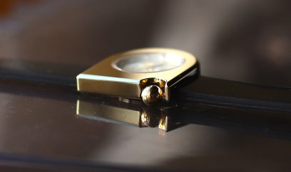 計算されつくしたカーブに本体とかけ離れた雰囲気の球体のリューズ。